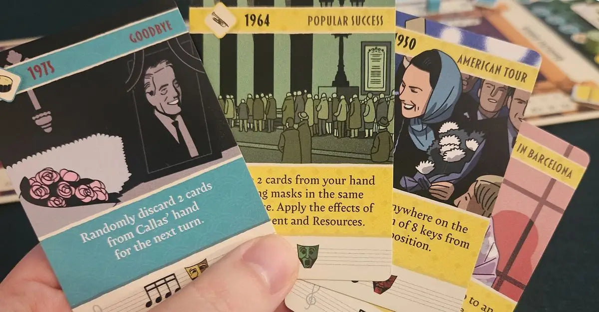The game ends when five operas have been performed. At that point, players add up the points earned from theaters, the orchestra, the piano, and the timeline to determine who has left the most indelible mark on opera history. Will Callas' overwhelming charisma or Tebaldi's vocal perfection claim the ultimate glory? Only the stage will decide.