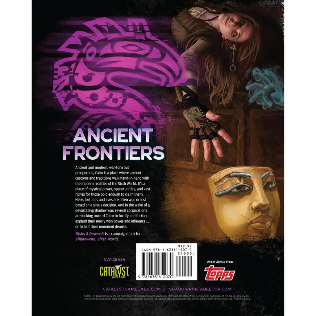 Risks & Rewards is a campaign sourcebook for Shadowrun, Sixth World, plunging runners into the mystical, high-tech heart of Cairo. Ancient traditions clash with corporate ambition in a city shaped by shadow wars and poised for transformation. Whether your team is navigating powerful factions, chasing secrets buried beneath the sands, or making desperate grabs for power and profit, Risks & Rewards offers unforgettable challenges. It's a high-stakes playground where fortune favors the bold—and punishes the reckless.