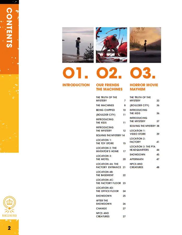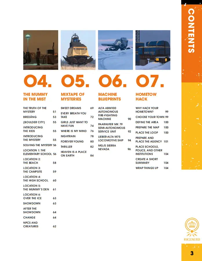 Toys suddenly developing intelligence. A mystical mummy roaming the beaches. Weird events in the local video store. A mixtape full of mysteries. Four wondrous machines. A guide to creating your own setting for the game. All of this and more is included in this volume, the first official module for the multiple award-winning Tales from the Loop RPG. This book includes: