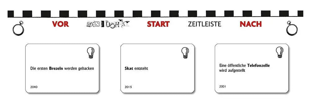 Bei Anno Domini kommt es nicht auf exaktes Wissen an. Denn wer weiss schon, ob „die ersten Brezeln gebacken wurden“ bevor oder nachdem „es erste Kanonen auf Schlachtfeldern gab“. Reihum fügt jeder Spieler der Kette aus meist kuriosen Ereignissen ein neues hinzu und versucht so, als Erster seine Karten loszuwerden.