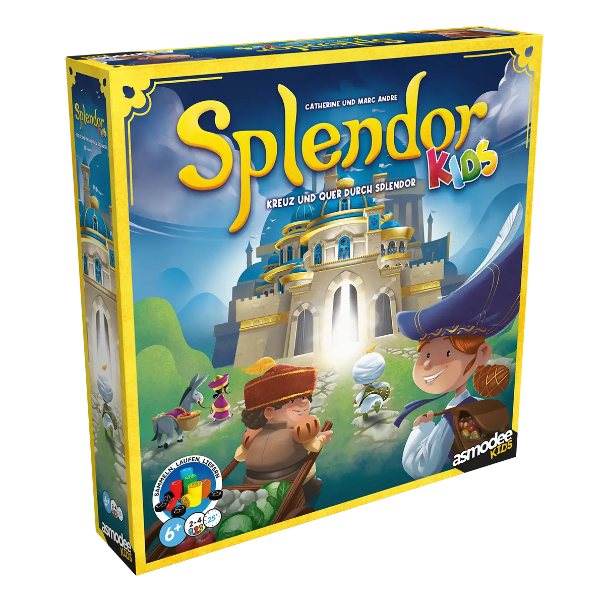Die Ressourcen sammelt ihr dabei mit dem altbekannten, genialen System von Splendor. Wählt euren Weg durch das Königreich möglichst geschickt, denn nur wer am Palast von Splendor ankommt, bevor sich die Tore schliessen, gewinnt die Gunst der Königin und damit das Spiel!