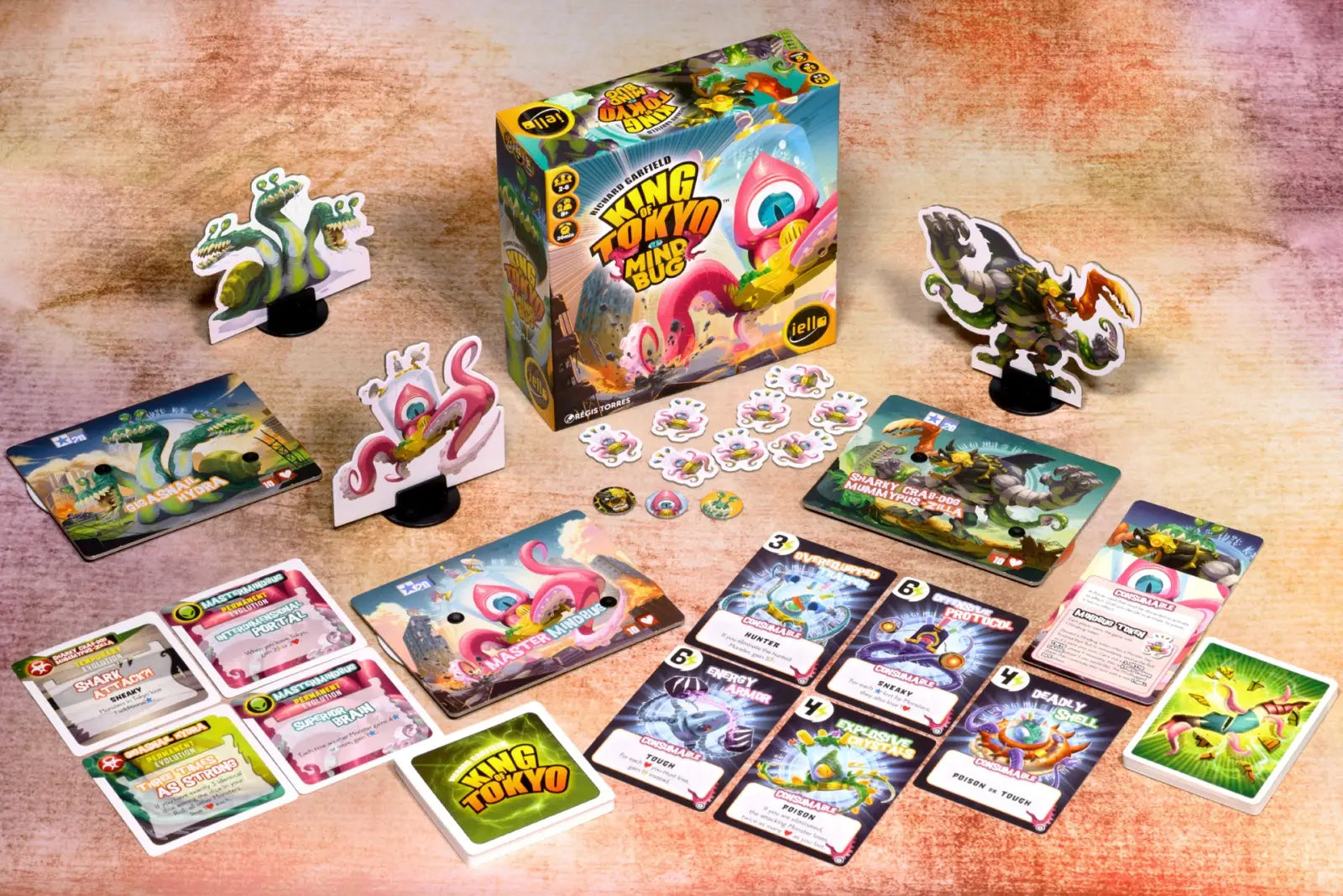 King of Tokyo und Mind Bug in einer aufregenden Crossover-Erweiterung! 3 neue Monster aus dem Mind Bug-Universum mischen mit im Kampf um Tokyo. Gigantische Portale öffnen sich am Himmel über Tokio: Mindbugs sind aus einer anderen Dimension gereist, um die Stadt für sich zu beanspruchen. Doch sie sind nicht allein – kleine, tentakelartige, gedankenkontrollierende Kreaturen, die Mindbugs, kommen dir zur Hilfe.