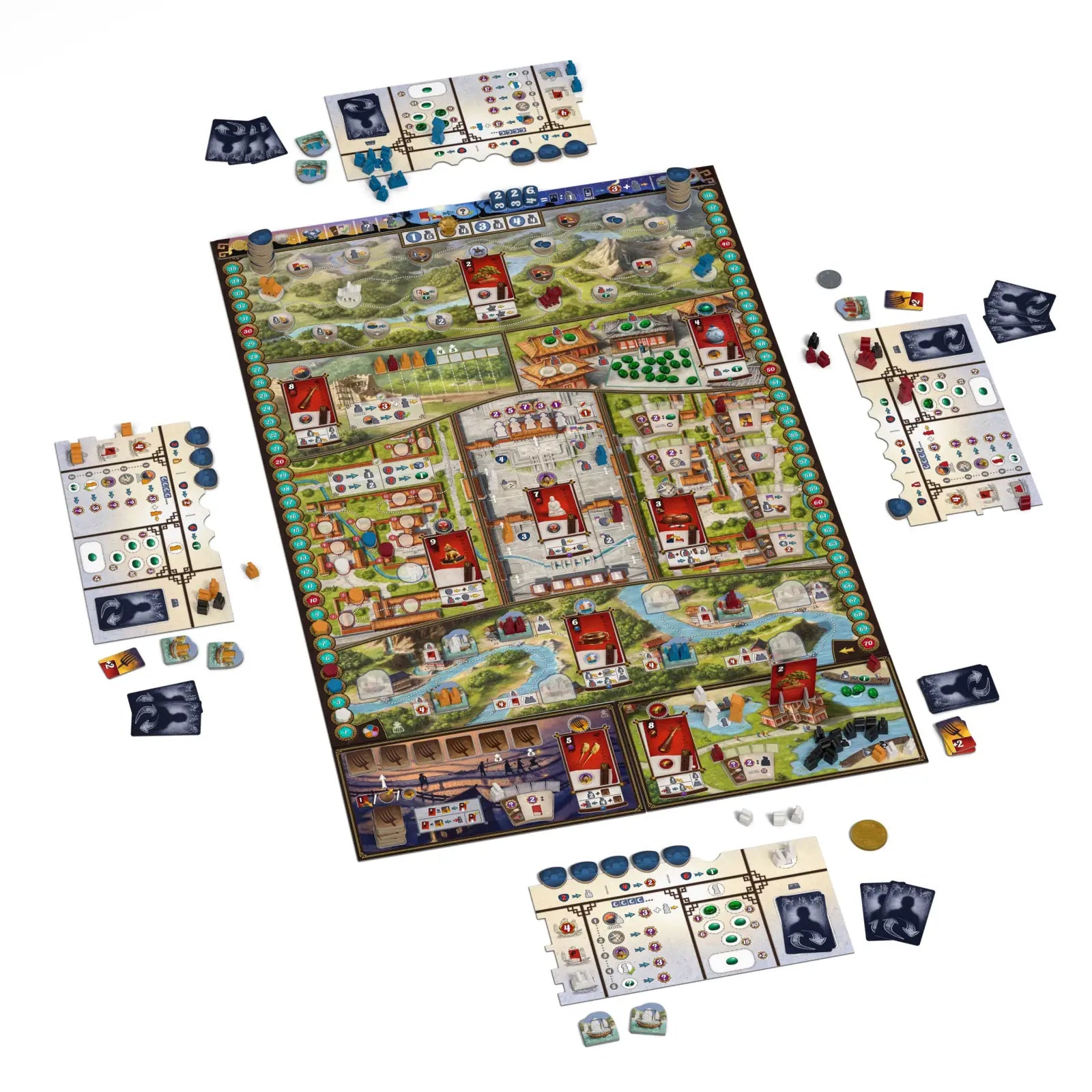 Gùgōng uses this extraordinary custom as its basis. Players take on the role of powerful Chinese families trying to gain influence and power by exchanging gifts with officials. The gift cards you offer as a player have to be of a higher value than the one you receive, forcing you to make strategic choices regarding which actions you want to take each turn. You will travel around China, sail down the grand canal, purchase precious jade, help construct the Great Wall, secure advantages through decrees, influence the game through intrigue, and ultimately, receive an audience with the emperor. If only 1 player succeeds in doing so, he wins. If several players succeed, the player with the most victory points among those players wins the game.